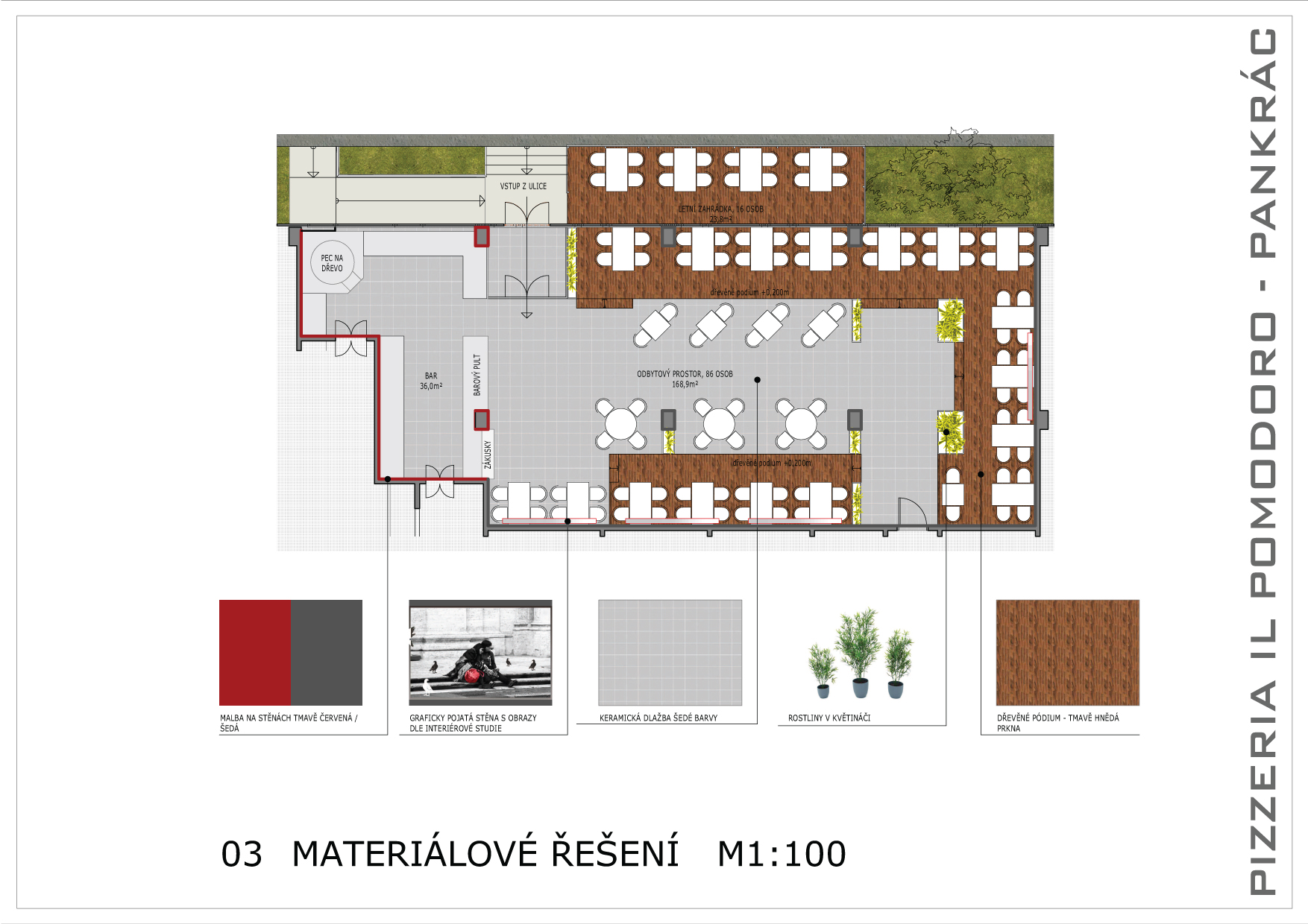 - Vestavba restaurace do vstupního podlaží administrativního objektu – odbytová plocha pro zákazníky, venkovní předzahrádka i výrobní a provozní zázemí restaurace